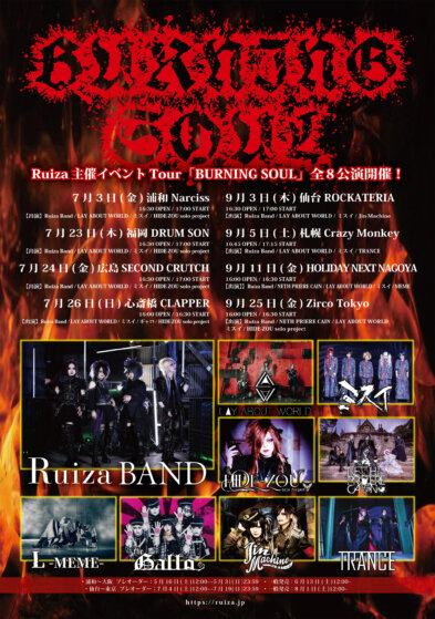Ruiza主催イベントTour「BURNING SOUL vol.12〜19」詳細発表!! Ruiza BANDメンバーとしてTsunehito全箇所参加!!