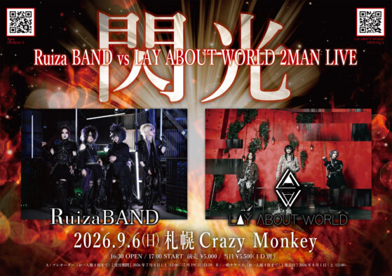 2026年9月6日(日)札幌Crazy Monkeyにて Ruiza BAND・LAY ABOUT WORLDと2マンライブ開催!! Ruiza BANDメンバーとしてTsunehito参加!!