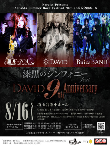 2026年8月16日(日)埼玉会館小ホール「漆黒のシンフォニー3MAN」にRuiza BANDメンバーとしてTsunehito出演決定!!
